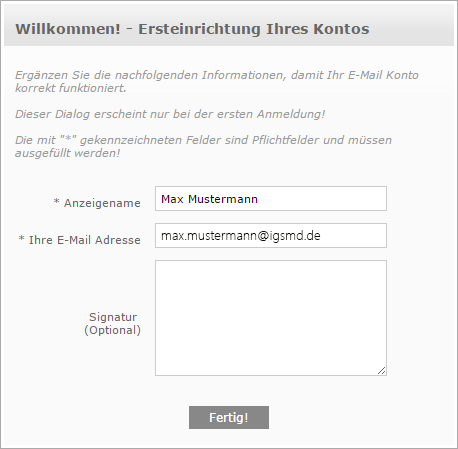 Bevor Sie Ihr IGS E-Mail Postfach im kompletten Umfang nutzen können sind einige Konfigurationsschritte notwendig: