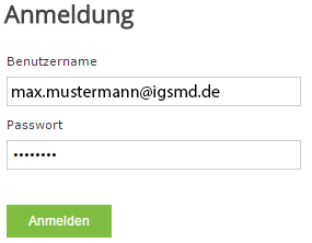 1. Melden Sie sich mit Ihrer kompletten E-Mailadresse (x.xxxx@igsmd.de) sowie ihrem Kennwort am System an:
